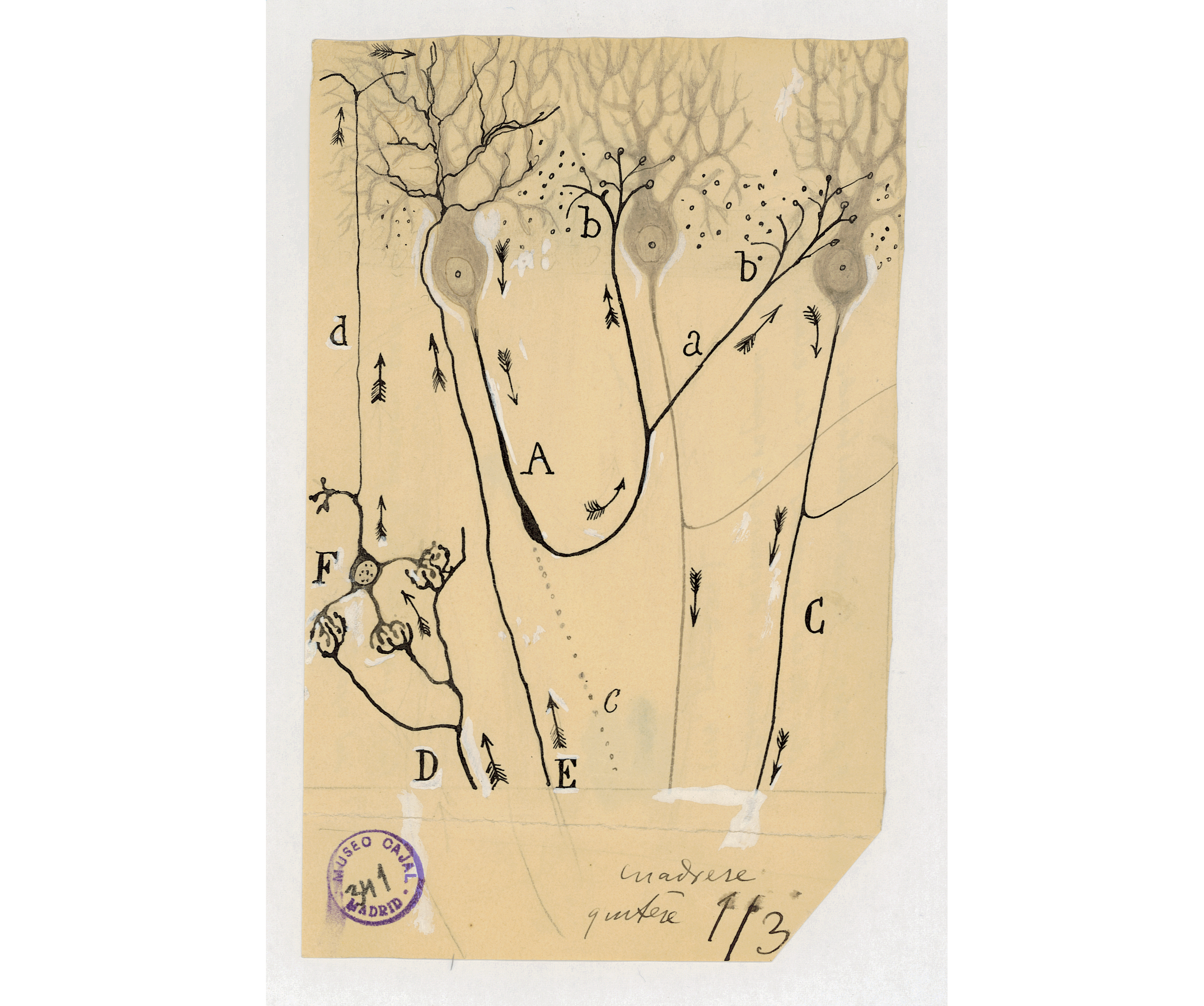 Black Chinese ink, graphite, and gouache, 182 x 109 mm / 7. 1 x 4.2 inches (irregular). LC03068. Courtesy of Cajal Legacy-CSIC.