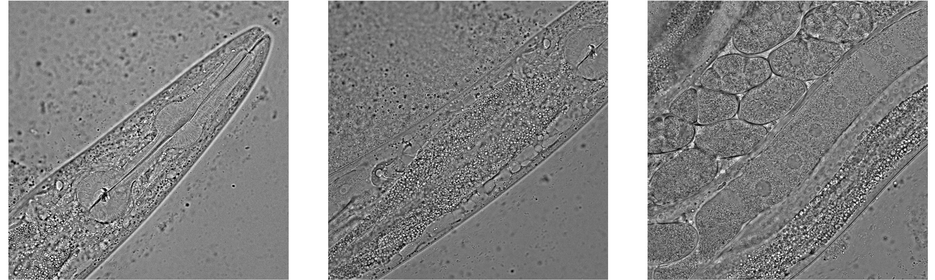 Seeing through a Caenorhabditis elegans, or roundworm, using a confocal microsocope, Jess Nash, 2024.