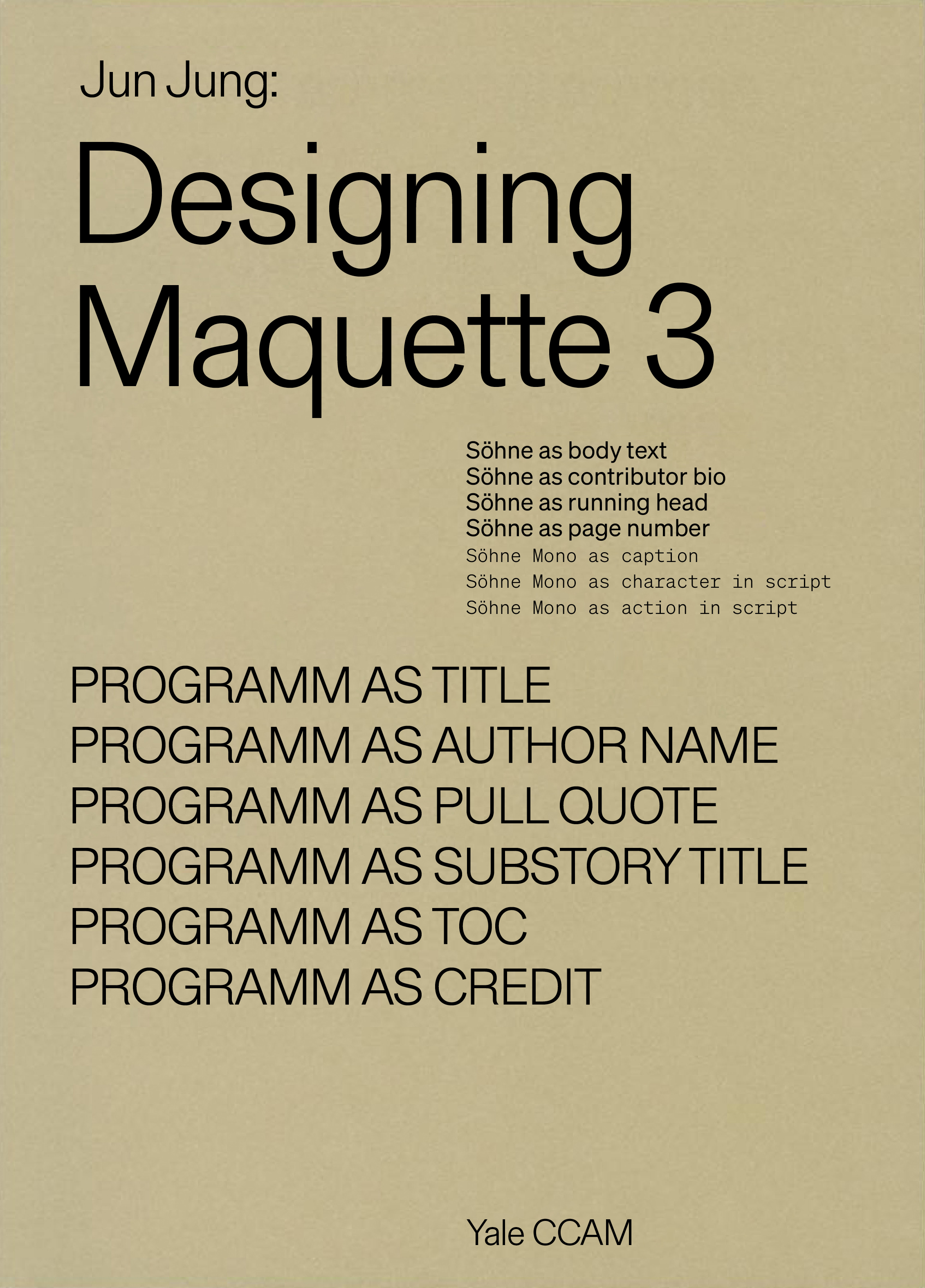 AZ: That’s beautiful. I want to ask about the print design for Maquette. You were intent on changing the typeface, which was Neue Haas Grotesk. You chose Gerstner-Programm for the titles, and Söhne for the body text.