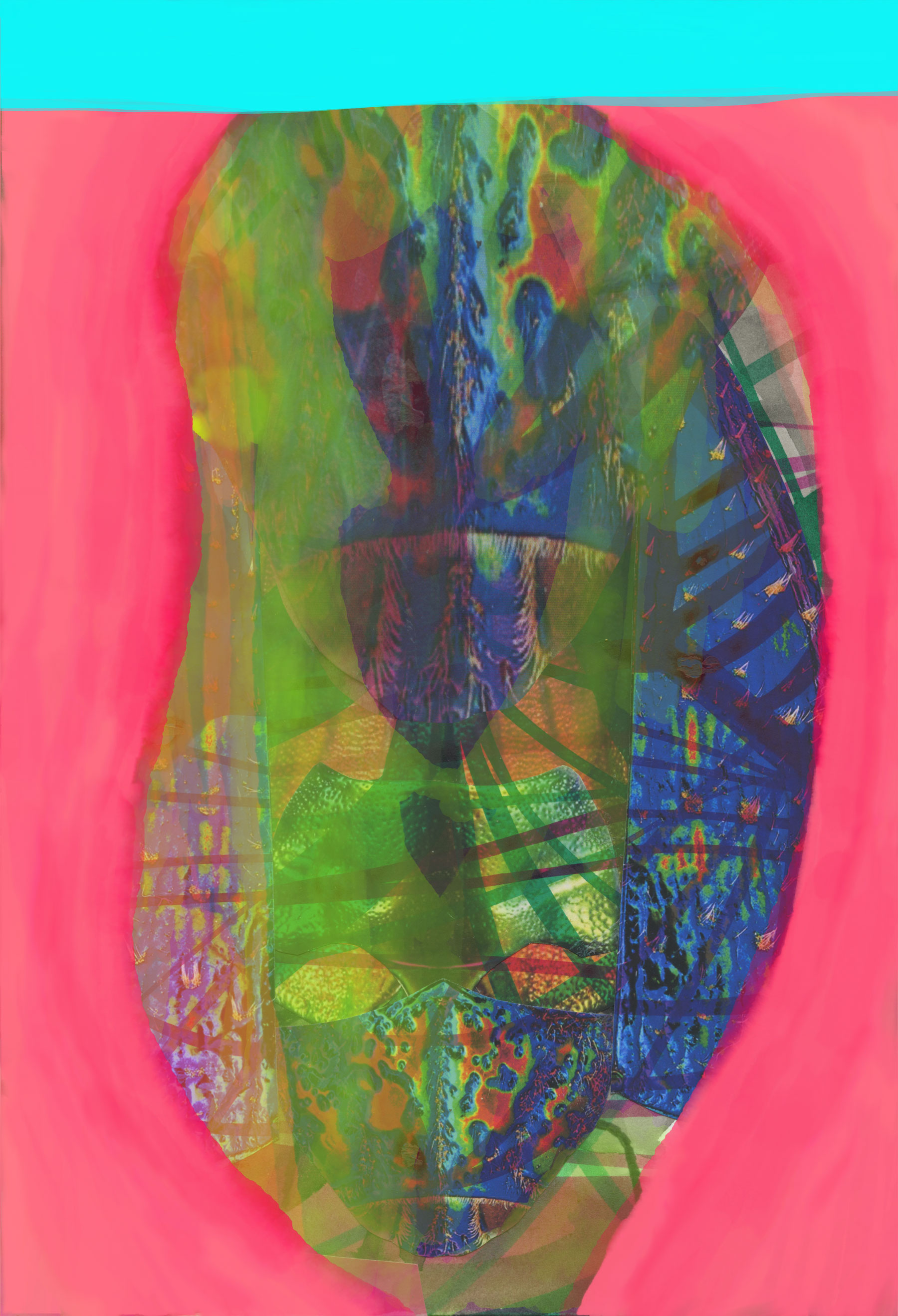 I usually take pictures of works in progress while I am at my studio and show them to my son, because he is curious about what I do there. I named this series “Exoskeletons for Protection,” and tell him that the types of powers they give us dictate how they make us feel. He and I decided that there is an orange one that makes us feel safe and warm. There is a purple one that makes us feel hungry and satisfied, and there is a pink one that is a net that protects us from pink bugs. We imagine that outside of the forms, there is falling slime, and a monster worm with sharp teeth. Occasionally, we imagine that we are on the inside of the forms, and sometimes we are on the outside, slaying dragons. All of the them give us spider powers, so that when we are on the outside, we can protect ourselves.